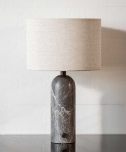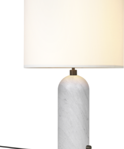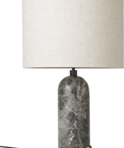 Gravity bordlampen, designet af Space Copenhagen, er æstetisk kontrasterende styrke og skrøbelighed. Med sit navn fra lampens karakteristiske balance mellem forankringen af ​​den tunge, cylindriske base og den lette, luftige skærm.