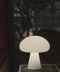 Med en matteret, mundblæst glasskærm, som brugt til Currys originale lamper, og integreret dæmpbar LED-lyskilde, kan den genopladelige lampe nemt flyttes mellem inde og ude. Med en komplet opladning på fire en halv time, der giver op til 40 timers lys.