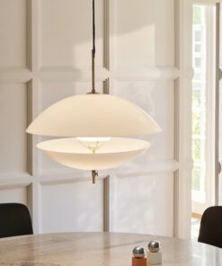 Musling™ er inspireret af strandskaller, der åbenbarer en skjult perle i sit indre. Pendlen i opalglas med elegante messing-detaljer oplyser rummet med et blødt, stemningsgivende lys fra sin indre lyskilde.