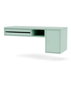 De to bakker kan tages helt ud af modulet og giver dermed et godt overblik over indholdet. BURAEU kommer kun som et vægmonteret møbel og kan vælges i Montanas 40 lakfarver. Med modulet følger et skriveunderlag. Modulet har en højde på 13,8 cm – 36,6 cm, en bredde på 93,8 cm og en dybde på 38 cm.