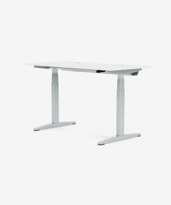 Skrivebordet overholder EUs og Arbejdstilsynets anbefalinger til en fleksibel og ergonomisk arbejdsplads. Bordet fås i flere farver og størrelser og det er muligt at tilvælge komponenter, som kan monteres i bordpladen.