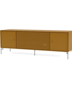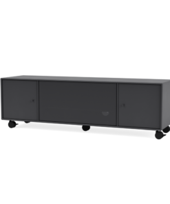 OCTAVE III er en moderne og elegant skænk til opbevaring af elektronisk TV- og lydudstyr. Opbevaringsenheden her et skab på hver side af det midterste rum, som har tre inddelinger og en perforeret, lakeret foldedør, hvorigennem man kan betjene elektronisk udstyr.