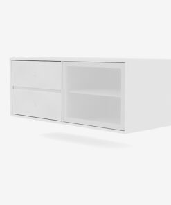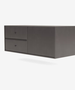 TV bordet har to rum bag klap væk-lågen, som adskilles af en hylde som har udskæring til kabelføring mellem hi-fi udstyr i modulet. Du kan vælge tv bordet i alle Montanas 40 miljøvenlige og vandbaserede farver, og kan derfor tilpasse tv bordet til præcis dine præferencer.