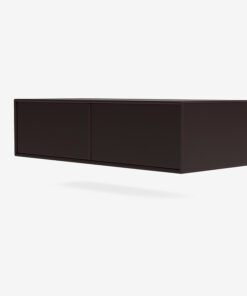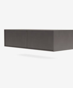 Modulet har to lige store rum og bagbeklædningen er forsynet med en rund udskæring til kabelgennemføring, således at elektronik kan tilstuttes til strømstik. Tilpas tv-bordet efter dine ønsker, ved at vælge imellem 40 miljøvenlige og vandbaserede farver samt om du ønsker modulet med ben, hjul, sokkel eller med ophængsbeslag. Valget er dit.