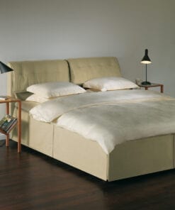 Faruk sengegavl fra DUX. Bekvem sengegavl med klapper, der kan indstilles i fire forskellige positioner. Manuel styring eller fjernbetjening (ekstratilbehør). Betrækket er aftageligt og kan fås i valgfri stof. Sengegavlen fås i højden 80-93 cm, afhængigt af sengemode, og i alle standardbredder.