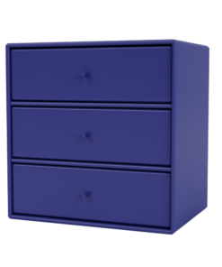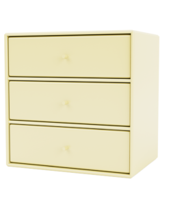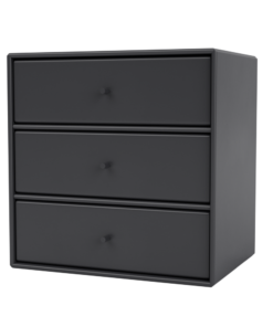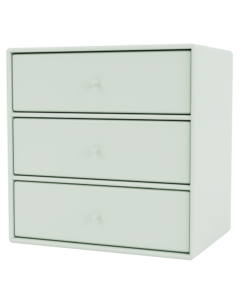 Dette Montana Mini modul kommer med tre hylder og tre skuffebakker. Skufferbakkerne hviler på hylderne og kan tages helt ud af modulet. Modulet kan dermed anvendes både med og uden skuffebakkerne.