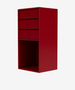 1462 Skuffemodulet er ikonisk Montana design med tre skuffer og et åbent rum. Kombinationen af åben og lukket opbevaringsplads pakket ind i Montanas velkendte klare linjer fungerer i alle hjemmets værelser. Tilføj stilsikker personlighed med dette alsidige skuffemodul, som gør sig godt alene eller i kombination med andre moduler fra Montanas reolsystem.