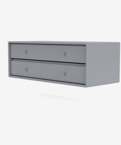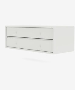 7122 er et moderne skuffemodul fra Montana med to store skuffer. Indhyllet i Montanas velkendte detaljer og finish får du her masser af aflukket opbevaringsplads. Brug den i din entré, i din stue eller dit soveværelse og nyd, hvordan skufferne glider nemt op og i, når du har brug for deres indhold.