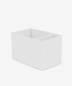 Living Things rektangulær plante- eller opbevaringskasse med to rum – til eksempelvis planter i det store rum og magasiner i det smalle rum. Kassen kan placeres på toppen af en Montana opstilling eller stå selvstændigt på hjul eller ben.
