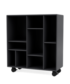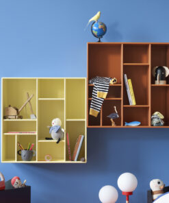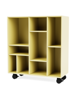 Den lille reol kan vælges med enten ben, hjul, ophængsbeslag eller sokkel – samt i alle Montanas 40 lakfarver.