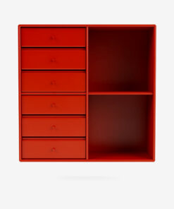 Skufferne er en taktil fornøjelse, som let glider op og åbenbarer deres gode opbevaringsplads. Reolen fås i alle Montanas 40 særligt udviklede, miljøvenlige lakfarver. Det ikoniske design er en funktion og alsidig tilføjelse til de fleste af hjemmets rum.