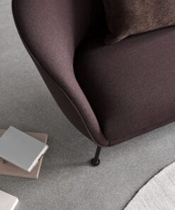 En kompakt lænestol og sofa med en karakteristisk høj ryg, der omfavner sædet som en krave. Hvilket skaber den sikre beskyttende følelse og inviterer dig til at komme ind, for at finde en hyggelig behagelig kropsholdning.