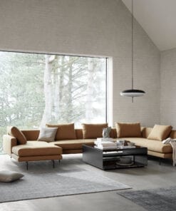 Et flydende sofadesign med lethed og kant som hovedfunktioner.