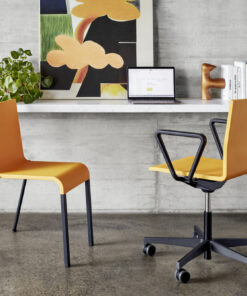 .04 kontorstolen er markant anderledes i udseende fra typiske arbejdsstole, der bruges i institutionelle kontormiljøer.