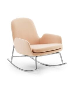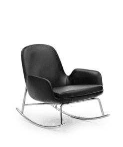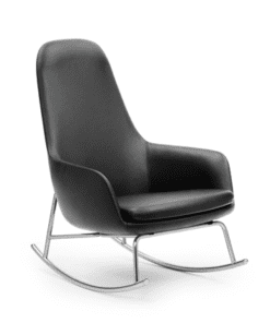 Era Rocking Chair er designet af Simon Legald. Stolen fremstilles i to størrelser med stålkerne og hynde i koldskum, ben i krom og betrukket med læder eller stof i et stort udvalg af farver.