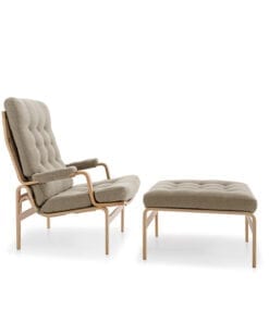 Ingrid lænestolen er designet af Bruno Mathsson. En bekvem lænestol i et funktionelt design. Knaphæftede, polstrede hynder, der er beklædt med stof eller læder. Ramme i limetræ, bøg, natur. Vælg mellem høj eller lav ryg. Fås også med fodskammel.