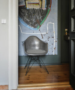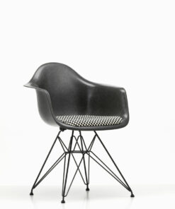 Den såkaldte Eiffeltårns base af DAR (Dining Height Armchair Rod Base), en indviklet og yndefuld konstruktion lavet af ståltråd, kombinerer lette, elegante former med strukturel styrke. For øget komfort fås Eames glasfiberstole også med en valgfri sædehynde.