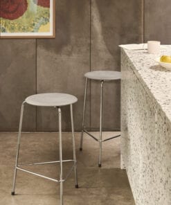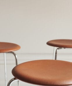 Dot™ skamlen er en smuk, enkel siddeplads, der både kan bruges i det daglige eller fungere som ekstra stol på kontoret eller ved spisebordet. Den er moderne, minimalistisk og utrolig ren i sit udtryk. Et sofistikeret design, som Arne Jacobsen gjorde brug af i mange forskellige og betydningsfulde projekter.