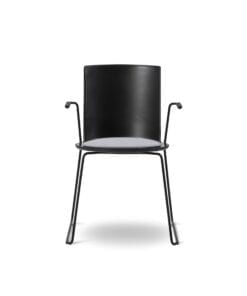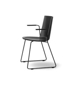 Elegant stol fra Fredericia Furniture som kombinerer geometrien af det firkantede ryglæn med det cirkulære sæde. Stolen fås i flere udgaver: Sledge, Sledge arm-chair, A-Base og A-Base armchair. Fås også med sædepolstring.