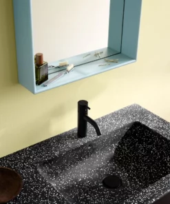 SHELFIE er et badeværelsesspejl med hylderamme lavet af 12 mm vandafvisende MDF. Det rektangulære spejl sidder inde i et reolmodul, der har en dybde på 9,9 cm. SHELFIE har fire huller til montering, og kan monteres enten vandret eller lodret.